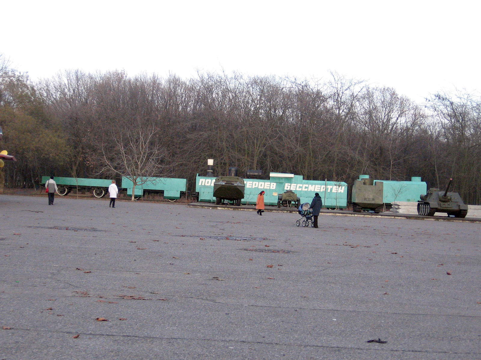 полевая кухня, амфибия, бронепоезд на заднем плане
