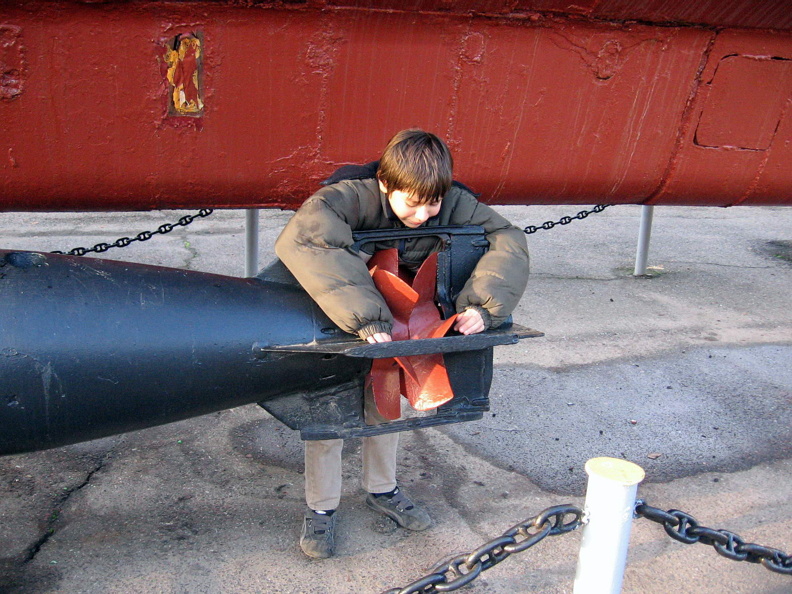 Хвостовая часть 533-мм торпеды, установленной у борта подлодки "М-305"