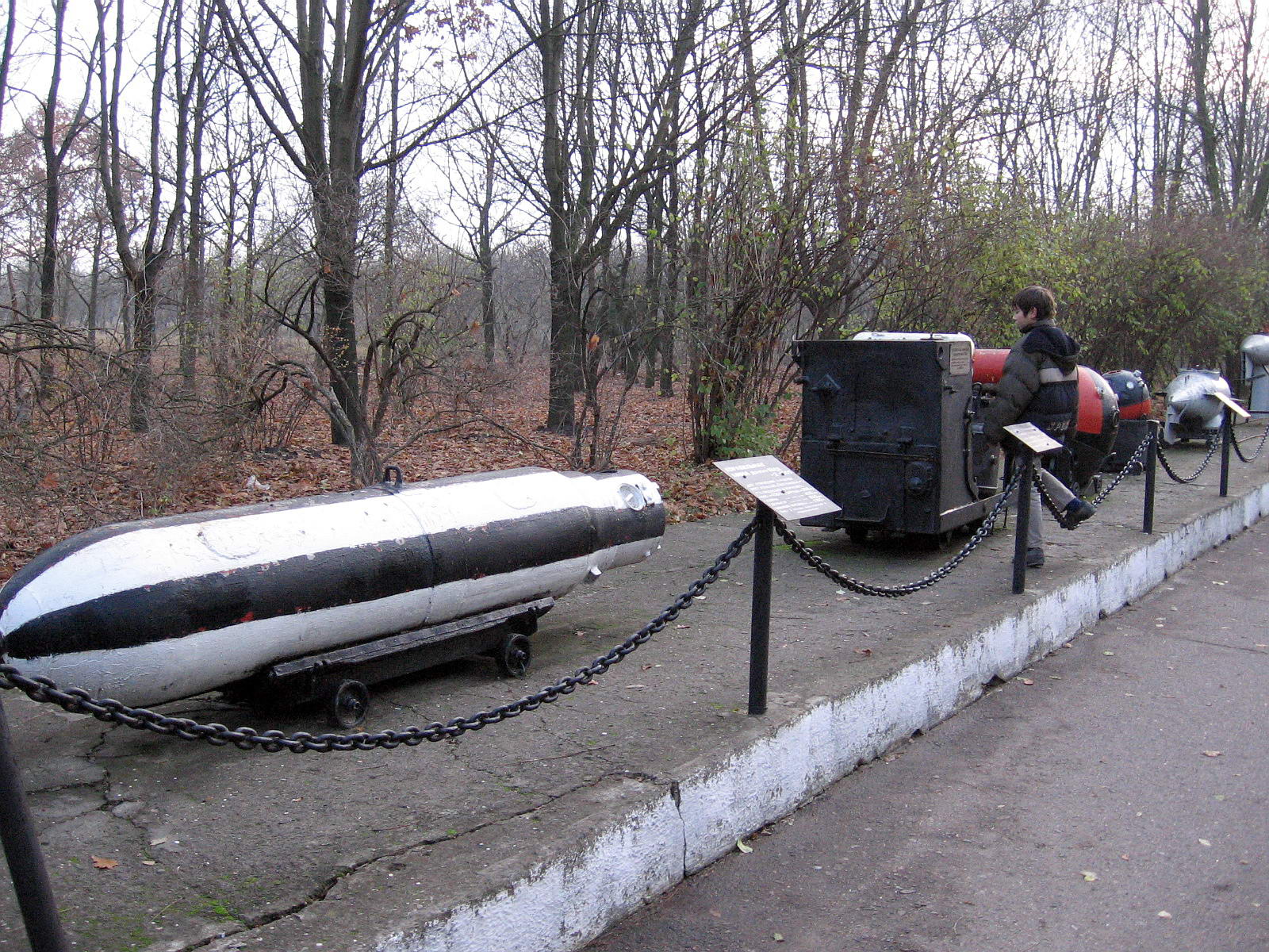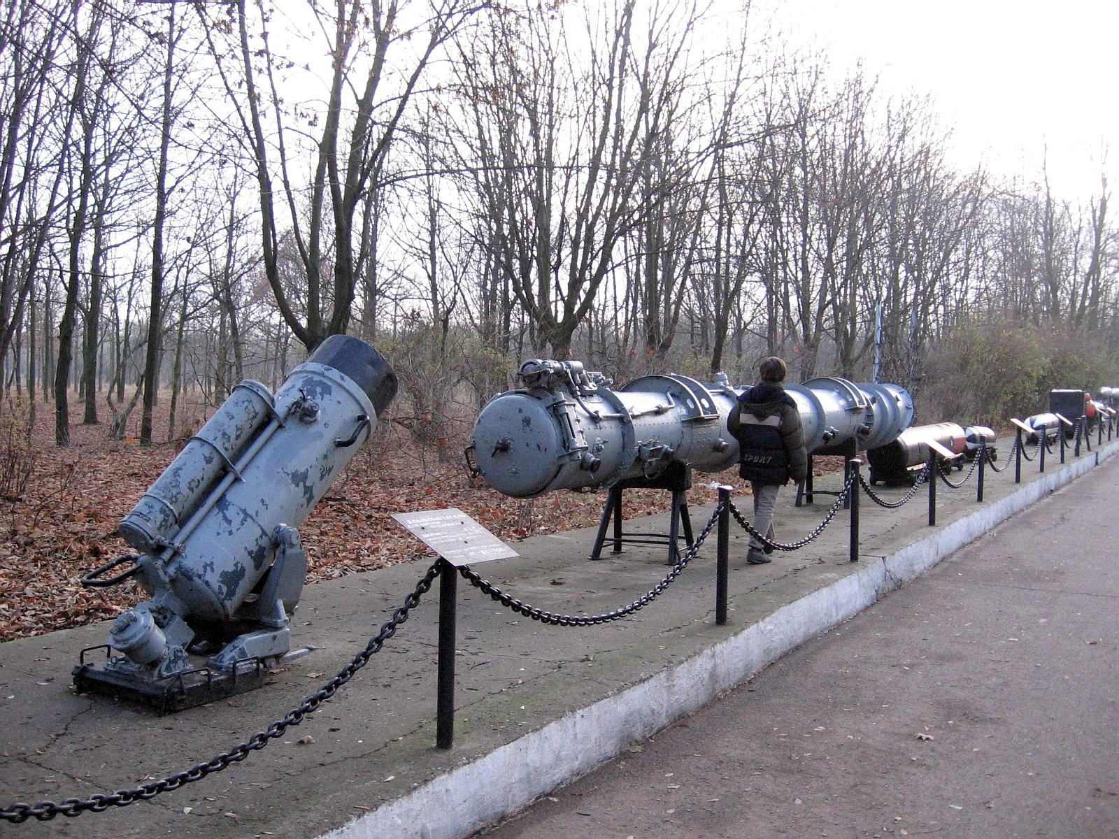 Экспозиция мемориала. Видны: реактивный бомбомет, 533-мм торпедный аппарат, различные образцы мин.