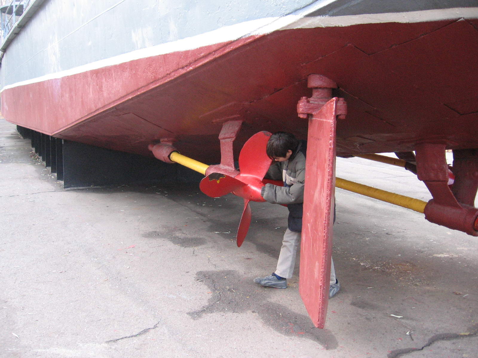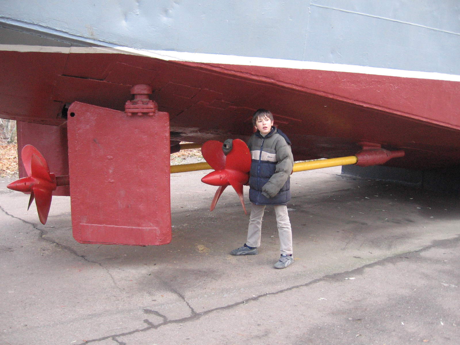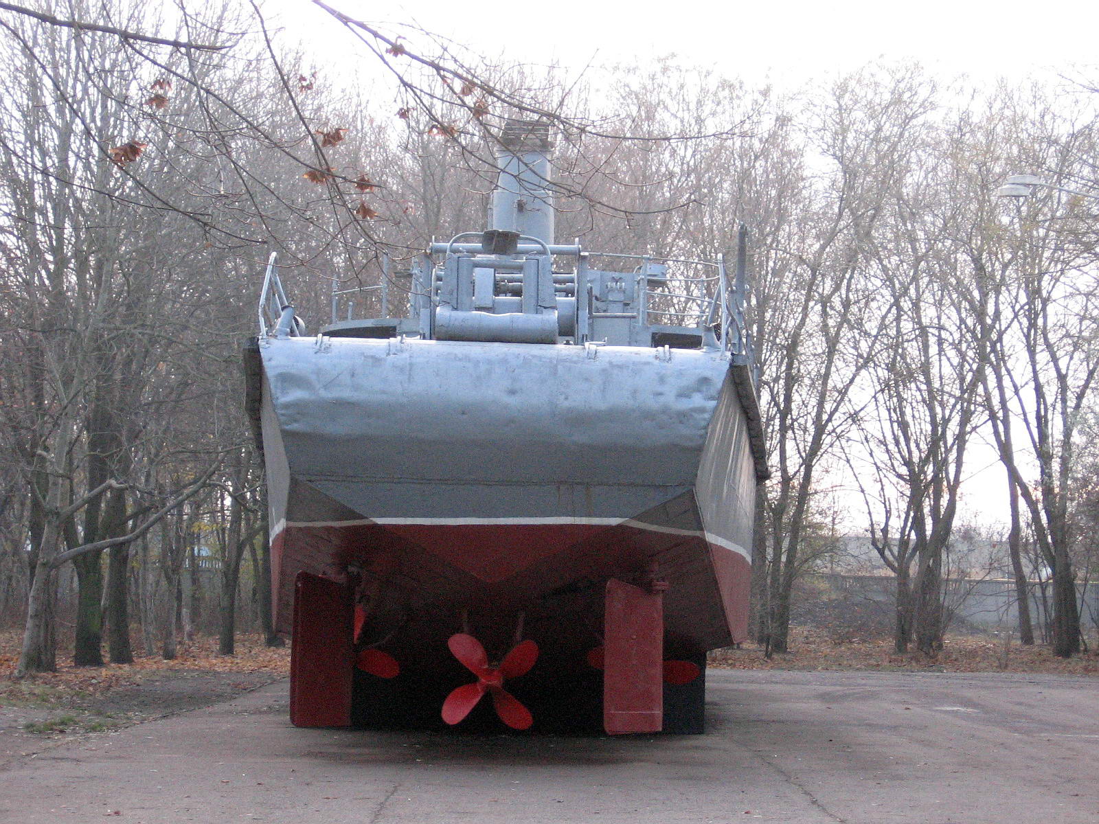 Корма тральщика "100-тонника". Бортовые винты вращаются, причем довольно легко.