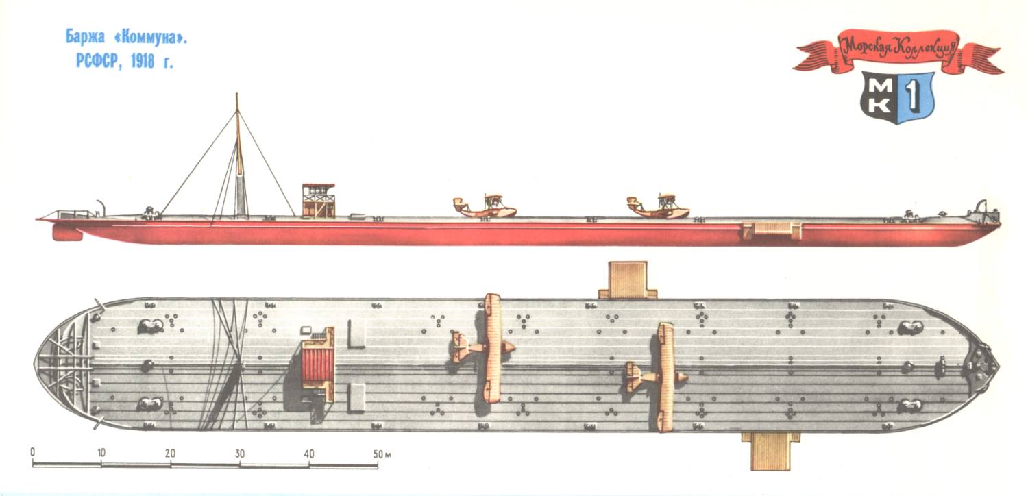гидросамолетов. Барже придали буксир, и получился небывалый в истории речной