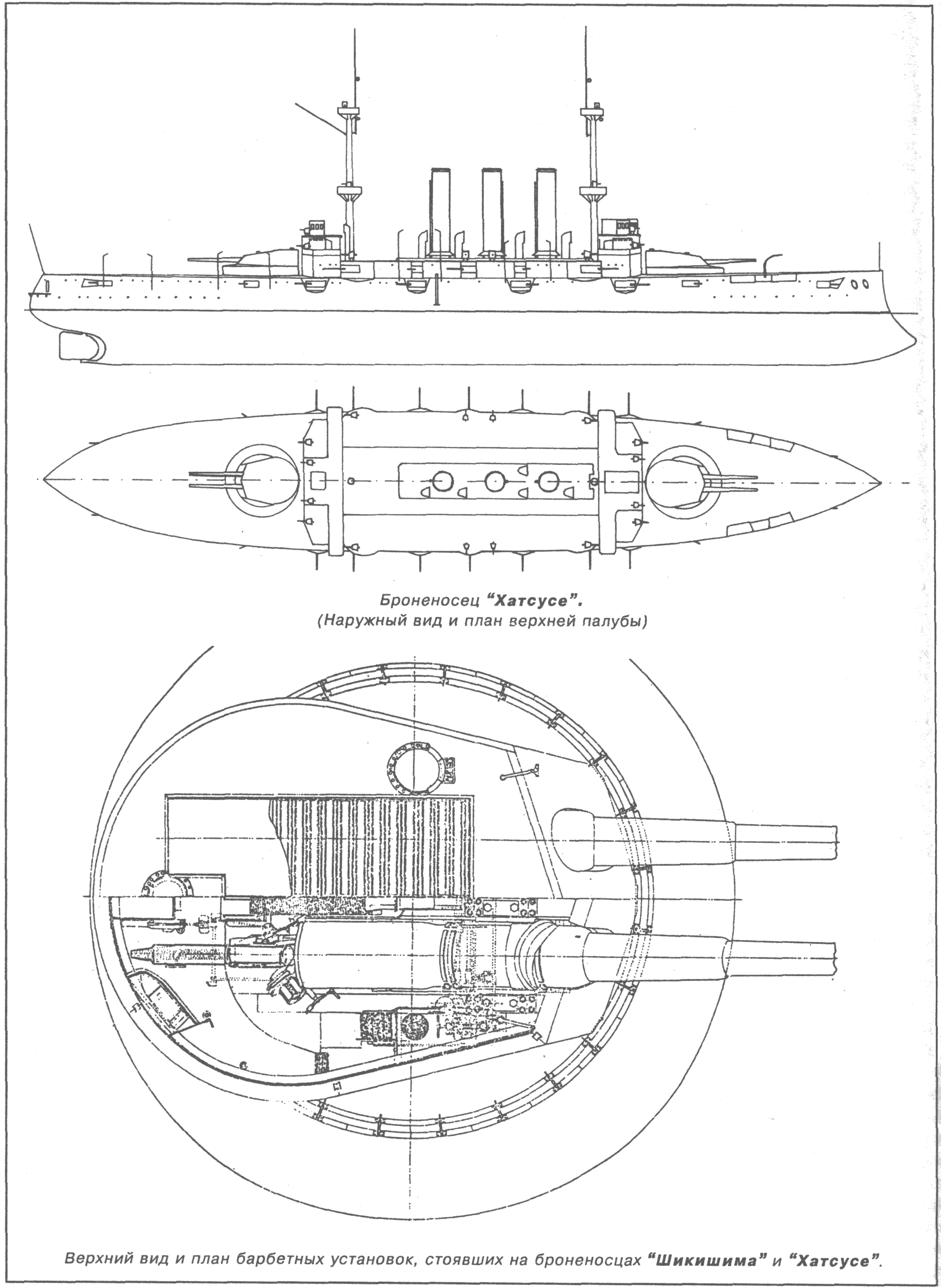 имевший почти такое же водоизмещение и отличавшийся несколько иным расположением брони, уступал "Хатсусе"