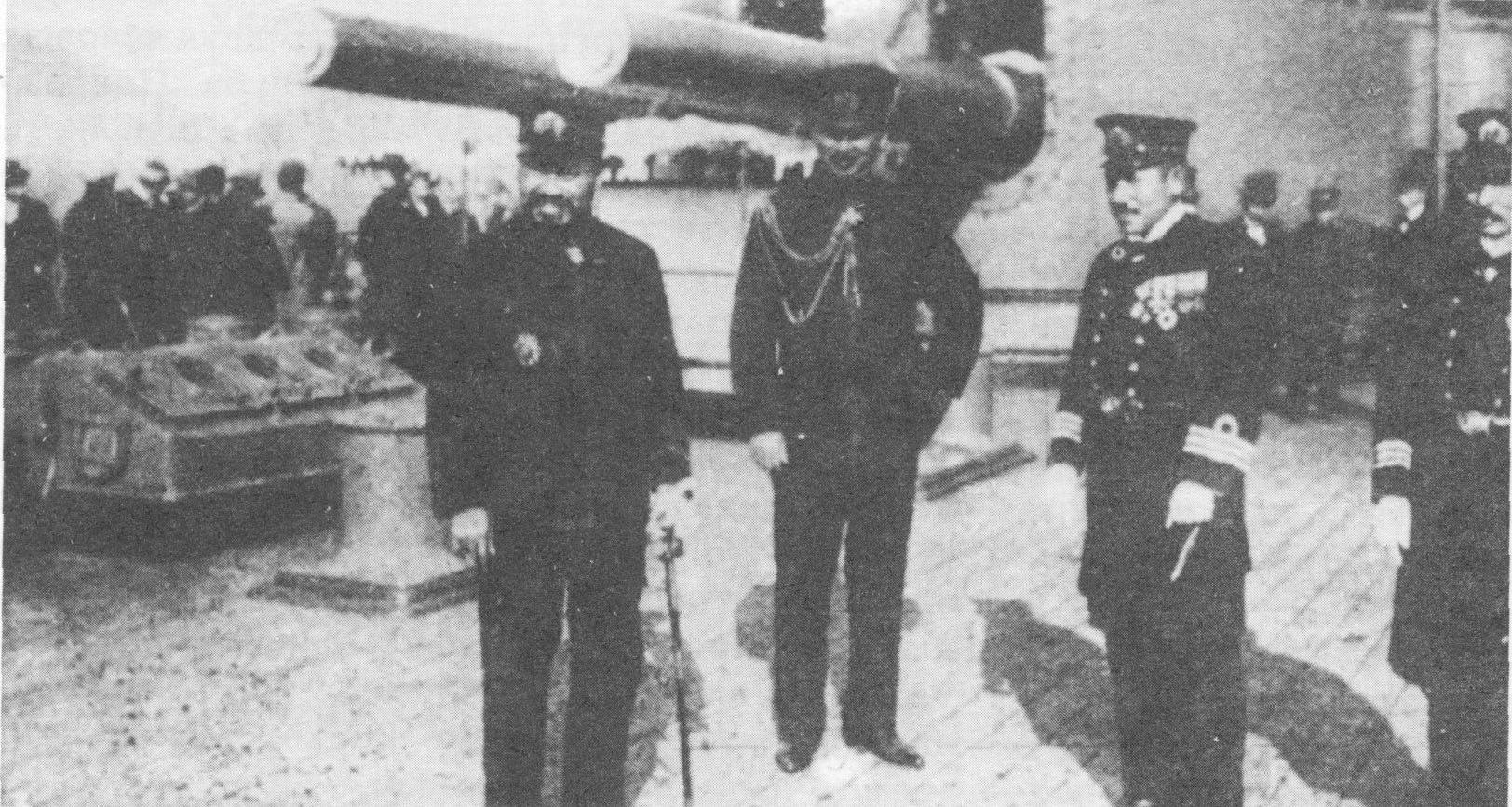 решил, что это один из броненосцев береговой обороны "Мишима" или "Окиношима", хотя эти корабли имели по две