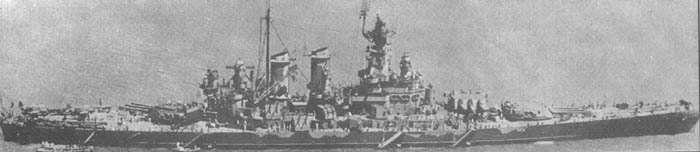 ![]() "Норт Кэролайн" в марте 1942 г. Величественный линкор при входе в гавань Нью-Йорка и выходе из нее на испытания привлек к себе столько внимания, что тут же получил кличку «Шоубоут» ("Плавучий театр", "Показушный корабль" или "Корабль для шоу" - кому что нравится), которая сохранилась за ним до конца дней. 3 сентября 1941 г. линкор вышел из Нью-Йорка в Чезапикский залив, а оттуда направился в пробный поход по Карибскому морю. После возвращения в Нью-Йорк 6 декабря на нем поднял свой флаг командующий 6-й дивизией линкоров контр-адмирал Дж. У. Уилкокс, но на следующий день - день японского нападения на Перл-Харбор - Уилкокс перенес флаг на старый «Техас». После интенсивных учений и артиллерийской практики в районе у острова Мэйн и Карибском море «Норт Кэролайн» 5 июня 1942 года ушел из Норфолка на Тихий океан.