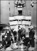 "Аделаида", бортовое 152-мм орудие и шлюпка, 1939 г. |
