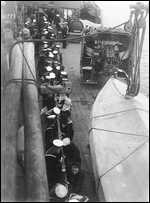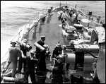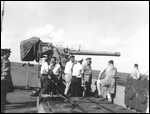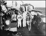 Группа офицеров и матросов у бортового 152-мм орудия крейсера